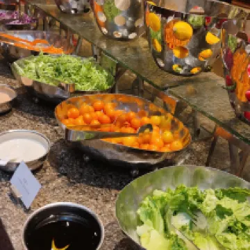 The hotel breakfast was incredibly rich and varied. It offered an array of authentic Tianjin local specialties like Gabacai, Doufunao, and Jianbing – the Jianbing, in particular, tasted genuinely local. The Western breakfast selection was equally impressive, with salads, fruits, and various juices, including fresh watermelon juice. The restaurant itself is spacious with ample seating, making for a very comfortable dining experience.