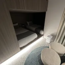 How come this hotel doesn't have a four-diamond rating? I don't know how it was rated. I was seriously misled when I booked the room. There were hairs on the edge of the wash basin, and there were foreign objects in the gap between the upper bunks that could be seen from the lower bunks. The hotel didn't even provide free drinking water, which was the first time I encountered this. I could only buy it at the supermarket. The air-conditioning was only warm on the upper bunk, and the lower bunk was very cold. The room was already crowded for three people. Is this a common phenomenon in Tokyo where every inch of space is valuable and rooms are small?