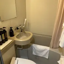 This hotel is a bit far away from the centre. We’ve decided to book this hotel because it’s near to Disneyland. However, it didn’t work in reality. We needed to make about 2-3 transfers on our way there and it didn’t worth it. We could have booked a different hotel in the centre of Tokyo and it would be the same time to get to the Disneyland. A good thing - the subway station is close to the hotel. The cleanliness could be better. And there was a weird kind of blanket without a duvet cover… we just didn’t even use it because of sanitary things, we don’t know who had slept under this duvet and whether it had been cleaned after or not. And that’s why we were really cold. You are suggested to have a free drink from the fridge in the lobby after 4p.m. And you can drink coffee from the coffee machine. There are many amenities for the room given on the first floor - tooth brush, a razor, bath foams, soaps, creams, face foams. That was perfect. There are also bathrobes. The cleaning is every day, if you don’t want your room to be cleaned you hang a magnet „please don’t clean“ and they leave new towels and bathrobes , tea anyway in front of the door, that was really convenient. There is a really beautiful park nearby (one station away) with a cherry blossom trees, there are hundreds of them and there are no crowds of people. Must visit in cherry blossom season.