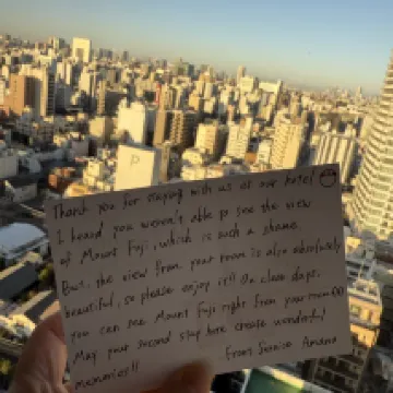 I was impressed with the hotel staff, we were greeted when we arrived at the hotel main entrance and the staff brings us into the hotel reception to check in. The hotel room is big and the city view of Tokyo is simply amazing. The hotel cleanliness is also very in tip top condition and I'm sure I will stay again at the hotel in my next visit to Tokyo.