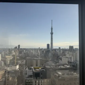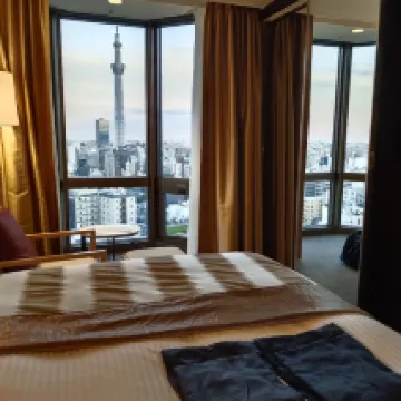 The hotel is super conveniently located, just a 5-minute walk from Senso-ji Temple. Asakusa Station is right outside, making transfers a breeze. The view is absolutely stunning, with the Tokyo Skytree right outside my window – it truly feels like something out of an anime!