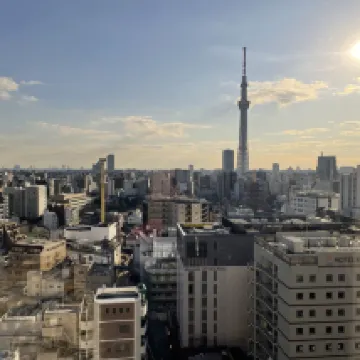 The 14th floor offers a perfect view! The room directly faces Senso-ji Temple and the Tokyo Skytree, which are beautiful both in the morning and at night. The location is convenient, with Senso-ji Temple's Kaminarimon Gate right downstairs and a bus stop nearby. Although the subway station is a bit of a walk, there are many shops and convenience stores on the ground floor. The front desk staff are fluent in English and provide professional service. The 20-square-meter room is consistent with the description, clean and spacious, and even comes with a multi-head charging cable, which is a thoughtful touch. There's a bathtub, but unfortunately, no bath salts. Overall, I'm very satisfied and would definitely stay here again on my next visit!