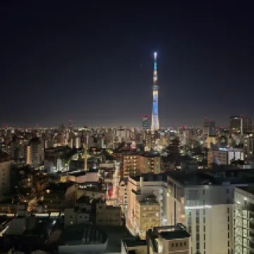 The hotel's location is excellent, with convenient public transportation and a nice view, especially the beautiful night view. It's very close to Senso-ji Temple. However, the bedding and facilities are a bit outdated, and the bed isn't comfortable to sleep on.