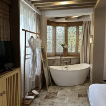 Very nice and clean hotel in very good location. Around 10 minutes walk to Wuzhen Ancient Town (west side). The room was quiet so we had a great night sleep. The room was spacious with comfortable bed and nice bath. The slippers, bathrobes were provided in the room. And all the toiletries are given during check in if needed. The services was super super nice, polite and helpful. They also send us some tips and recommendations about Wuzhen. On top of that we received little gift on our departure which was a lovely gesture. I would definitely recommend and I would stay again if I visit Wuzhen again.