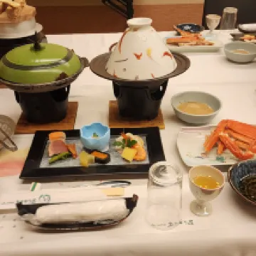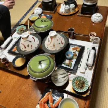 The ryokan style rooms were a lovely touch. The inclusive dinner came with so many courses that we were absolutely stuffed every single night and the fact that a member of staff helps explain all the dishes and prepares them in front of us felt like a real lovely touch of authenticity and luxury. There are no individual bathrooms in the rooms aside from a sink and toilet but the hotel Onsen is easy to access and comfortable to use. The staff also make the bed after dinner every night and anytime we had questions for reception, they were always happy to help, especially with train station transfer and recommendations and vouchers for different restaurants in town. The hotel rooms have a great view of the mountains as it is slightly off the main road. I would definitely recommend this for couples traveling.