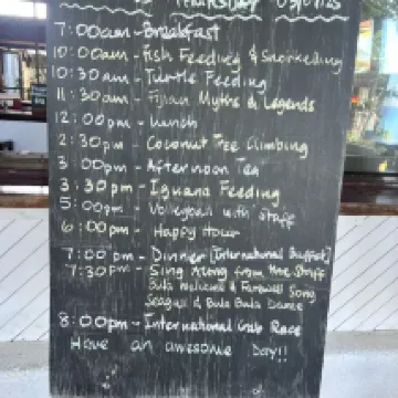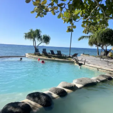 Great value for what we paid, compared to what other island resorts charge. Lowkey family friendly resort in a spacious and natural setting, with a local feel. The staff were welcoming and also talented, with nightly singing at dinnertime. Our Oceanview room was spacious and conveniently located with easy water access. Great snorkeling (amazing reef “gardens” and cliffs) if you’re willing to swim out a little further. We wore wetsuits and used fins which made it easier to stay out longer. The facilities are older but that’s part of the charm of this place and why you get great value for a relaxing and/or adventurous resort experience, depending on what you choose to do.