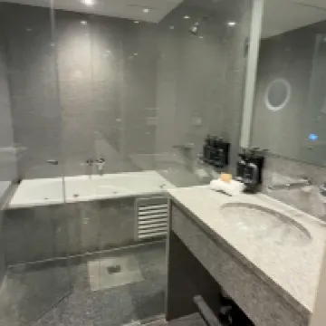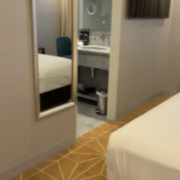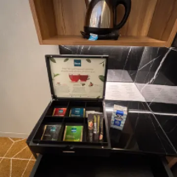 The room is outstanding, i like the table near the window where you can eat and or watch tv, the room is spacious and clean, the bed and pillows are very comfortable, the staff are very nice, they even extended my stay for one hour. I also like the tea and coffee set.
