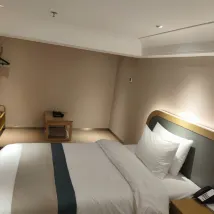 Close to the airport , the bed was very comfortable and the room was clean. Service at check-in was friendly enough, but they made a big deal about not being able to speak English, which was unnecessary and embarrassing. Facilities are limited, the restaurant operates at breakfast only, and the selection was meager. All food and drinks were the same temperature and no tea or coffehe available. The surrounding area is not ideal for those without a vehicle as there are only mechanics and similar enterprises to be found in the immediate surroundings. Service is the biggest issue. On check out the staff member insisted that I leave a review mentioning both himself and his colleague by name, even though they were not the staff members who helped me and answered my questions at check-in, nor was I able to read their names myself from their name tags which do not include Pin Yin. Another unnecessarily uncomfortable interaction. I suspect they don't get a lot of international guests, which seems appropriate given what is on offer.