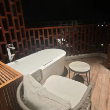 Facilities: This five-star hotel boasts comprehensive and luxurious facilities. The large balcony with a bathtub, lounge chair, and table is a thoughtful touch. The linens are of excellent quality and very comfortable. However, the toiletries could use an upgrade. The breakfast buffet is rich, varied, and delicious, featuring Hainanese specialties. Dishes and drinks are replenished promptly, which is a big plus! 👍