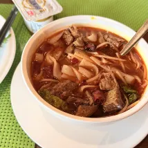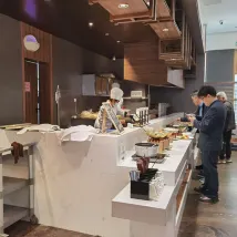 - A combination of Chinese and Western food, the hot dry noodles and freshly cooked wontons taste good, the fruits are fresh, and the freshly ground coffee machine tastes better than expected.