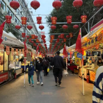 The surrounding area is lively; as soon as you step out of the hotel, you're right in the middle of a bustling night market with tons of delicious food – roasted lamb, yogurt, all sorts of fruits, you name it. The hotel itself is conveniently located, clean, and safe. It's easy to get anywhere, and it's only 3 kilometers from the train station, so a taxi ride is just 10 yuan.