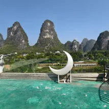 The Shuijingxuan Hotel pleasantly surprised us. Centrally located in Yangshuo's Ten-Mile Gallery and Yulong River Scenic Area, the hotel offers a tranquil setting amidst the bustle of the city, combining traditional décor with modern amenities. The rooms are spacious and comfortable, the service is attentive and friendly, the Chinese courtyard offers a place to relax and sip tea, and the outdoor pool invites you to swim. The Yulong River tributary is right outside, offering direct views of the gallery. A short walk brings you to excellent riverside restaurants. The scenic area is easily accessible by foot or taxi. Shuijingxuan was a great choice. 👍👍