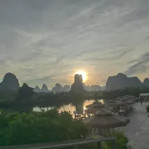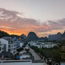 Jawapan daripada Pihak Penginapan: Dear Guest, thank you so much for choosing Shuijingxuan from among thousands of guesthouses. We are deeply moved and delighted to have you enjoy such a unique experience of scenery and culture during your limited time. We offer various room types to meet the needs of our guests. Located within the Yangshuo Ten-Mile Gallery scenic area, facing the Yulong River, the hotel boasts a picturesque and tranquil atmosphere, far removed from the hustle and bustle of the city. It's close to Wanjing Wharf and Gongnong Bridge, and the Yansha Aviation Sports Base is just a 2-3 minute bike ride away. Conveniently located yet peaceful, you can even watch hot air balloons, gliders, and helicopters take off from your room! On a clear day, you can enjoy the sunrise from the rooftop and the sunset from Gongnong Bridge. Thank you again for your stay. The Shuijingxuan team looks forward to your next visit and wishes you a pleasant stay!