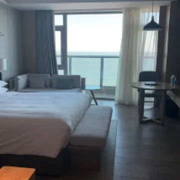 The room is very spacious and clean. I was a bit worried about the facilities being outdated since it opened in 2018, but they actually seem very well-maintained. Every corner is spotless, and everything looks new and in great condition, with no signs of age. The breakfast is rich and delicious, offering a wide array of Chinese and Western dishes, specialty noodles, desserts, and cold cuts. The service is also excellent; there's always someone at the entrance to help with luggage from the trunk and open car doors. Plus, from the sea-view room, you can sit on the sofa and watch the waves rolling in – it's a fantastic feeling. Going downstairs, you just walk through a small garden and you're right on the beach, which is super convenient. It's about a 10-minute walk to Tianma Pier, perfect for a stroll along the soft sand by the sea. This hotel offers incredible value for money in Yantai!