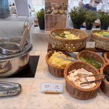 The hotel staff were very friendly. Breakfast was decent, and it was a huge plus that we could still eat it after checking out. However, items weren't always replenished promptly, which might have been because we arrived a bit late. The beef soup, though, was absolutely delicious! In the evening, they offered *douhua* (tofu pudding) in the lobby, but it wasn't particularly tasty.