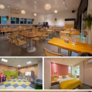 Conveniently located near Jiaoxi Station, just a 10-minute walk away. The bohemian-style decor gives it a wonderful resort vibe. The in-room bathtub is huge, easily accommodating a family of three, four, or even five people! 😂 The air conditioning works great, keeping the room cool. For breakfast, they provide vouchers for you to enjoy a meal at the nearby Mos Burger. The self-service drinks, coffee, and snacks available in the lobby are a nice touch. However, during our stay, the 6th-floor toy room and foot bath were under maintenance, so we could only take pictures. Overall, it's a great family-friendly hotel. 👍 The surrounding area near Tangweigou is also very lively, and with a 7-Eleven right downstairs, you'll never go hungry – super convenient! 😁