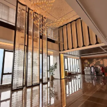 The hotel boasts an excellent location. The lobby is on the 37th floor, right next to the Yiwu World Trade Center, surrounded by comprehensive commercial facilities. It's just a 5-minute walk to the subway station, and only a 10-minute drive to the International Trade City. There's a convenience store directly opposite the hotel and a food street right next door, making dining and shopping incredibly convenient.