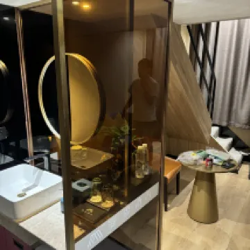 It's a mess. The carpet in the corridor is very dirty. The floor in the room is worn out. The wall is bulging. The bathroom has a lot of noise from the exhaust. There are a lot of sputum on the floor and it is not cleaned properly. The seal in the shower is not tight and leaks. There is a lot of noise near the elevator.