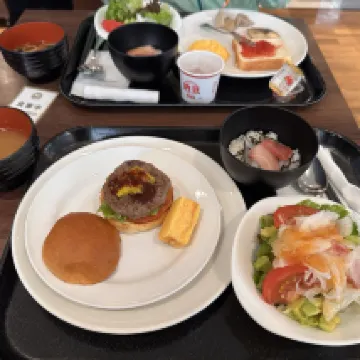 2. The breakfast spread is quite generous. If it's included in your room rate, it's definitely a good value. The seafood rice and burgers were delicious, though the curry rice was fairly average. My absolute favorite was the self-service salad bar, especially since it had fresh avocado – a fantastic way to get your greens and vitamins while traveling in Japan!