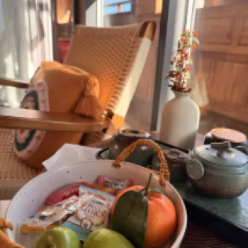 Feels like a remote village and peaceful stay. At night every business is closed and is dark in the village. It was a pleasant stay and the property manager helped transport our luggage to the second floor, and to the car after check out. The room had a seating toilet, heated blanket and a heater. No refrigerator, which is not a problem. A walking distance to a local convenience store, and cafes. The homestay has a view of the mountain range and the rooftops of the village buildings from a small shared space on the second floor. I need to notify the homestay, the number plate of the car each time the car enters the village between 08:00-18:00. It's a secured road entrance between these times. The road and path leading up to the homestay can be rugged, stone paths shared with horse riders, village dogs, visitors, vehicles and might be challenging for drivers to manoeuvre in narrow paths.