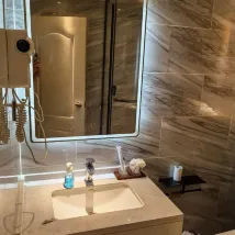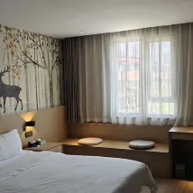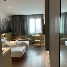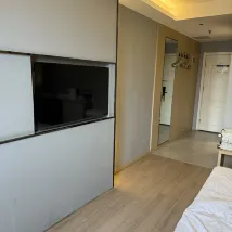 The hotel's environment and cleanliness were excellent, and the room layout was very practical. The staff were also very friendly. A particular highlight was the delivery robot for takeout orders – that was a delightful surprise!