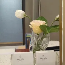 The hotel lobby provides complimentary tea, and the front desk service was excellent. They also offered thoughtful amenities such as disposable toilet seat covers and razors. The room itself was decent, very clean, and all items were neatly arranged.