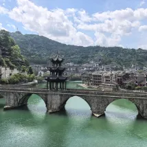 Jawapan daripada Pihak Penginapan: Welcome to Zhenyuan, an ancient town with a thousand-year history on the banks of the Wuyang River! Thank you for choosing and recognizing our value! We are so glad you had a wonderful time here. We are located in the heart of the ancient town's scenic area, with many must-see attractions such as Qinglong Cave, Zhusheng Bridge, Shiping Mountain, the museum, and ancient alleyways just minutes' walk away. Every room's balcony offers stunning river views, with Qinglong Cave and Zhusheng Bridge unfolding like a painting right before your eyes. The rooftop also boasts an exclusive panoramic terrace overlooking the town's picturesque landscape. We hope the beautiful scenery brought you joy! Welcome back again!