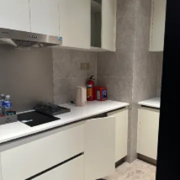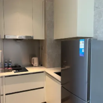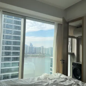 The apartment is well designed and very comfortable. The washing machine is a great addition. The beds are super comfy. The disposable towels are a bit thin but the shower was excellent. Food options available nearby, including Luckin Coffee downstairs. Very close to the port, this is a great choice if passing through Zhuhai.