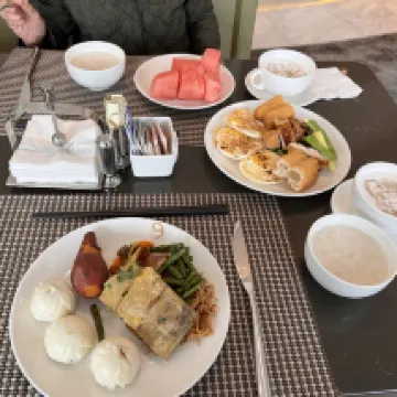 The service and breakfast at the Grand Hyatt are definitely highlights. From Mr. Geng and Mr. Wang, who handled the pier transfers, to Manager Shi at the concierge, Ms. Zhou at the front desk, and Ms. Pan at the restaurant, everyone was incredibly professional and enthusiastic. The staff are clearly well-trained. The hotel is nestled against the mountains and faces the sea, and our upgraded sea-view room offered fantastic views. The breakfast had a wide variety of dishes, and the taste was great too. Overall, it was a very good experience, exceeding our expectations!👍