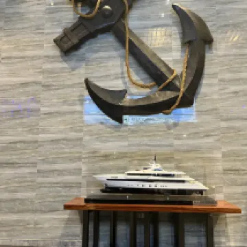 There is a yacht model in the hotel lobby. The room I booked is large, clean and tidy, but the central air conditioner is too loud and I didn't sleep well.