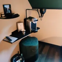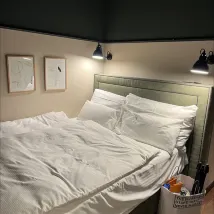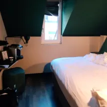 My room was on the top floor. It wasn't big but very modern with a coffee machine and all the things you may need. The bed was super comfortable.