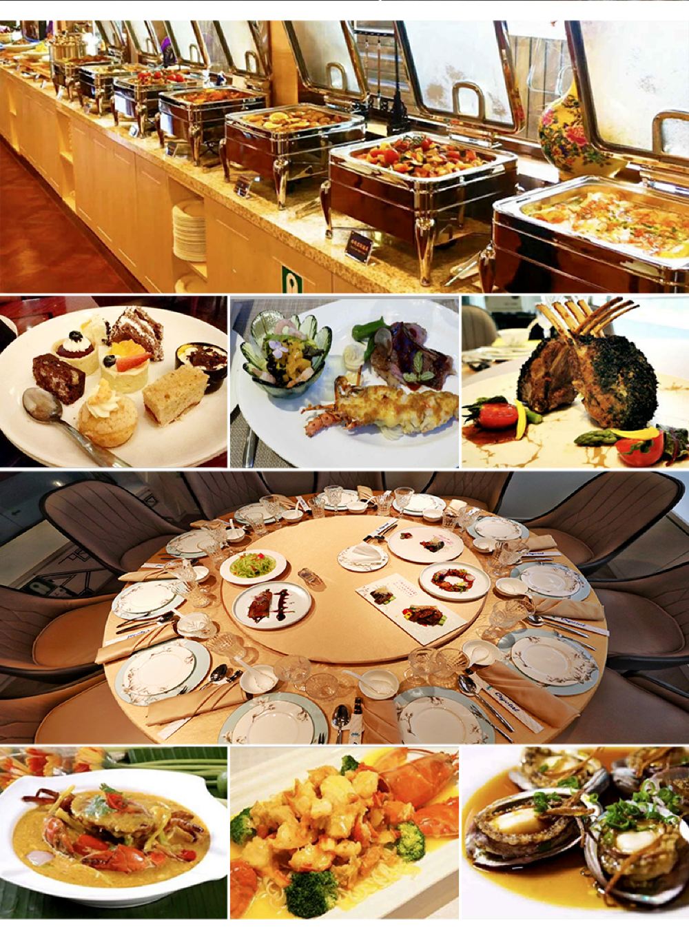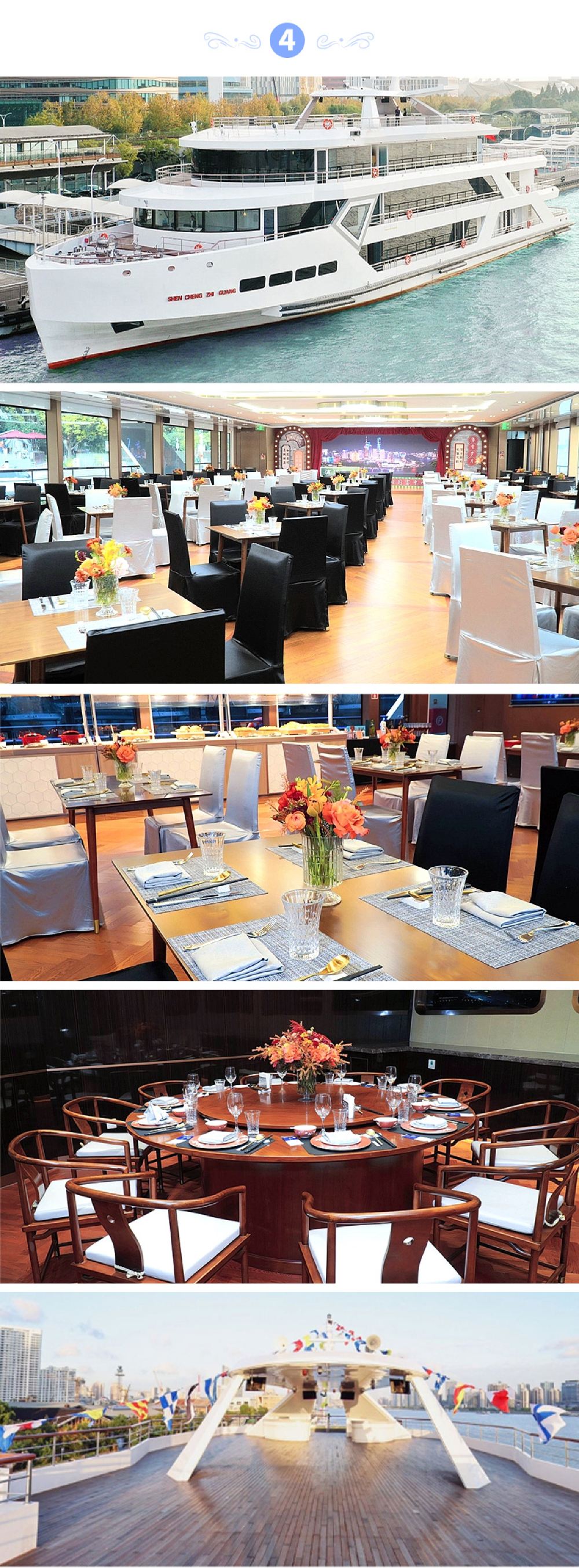 5. Dewan pemandangan perjamuan peribadi di tingkat atas pelayaran (Dewan Kristal/Dewan Shanghai) mempunyai had penggunaan minimum, sila hubungi sokongan pelanggan untuk maklumat menu.